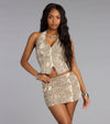 Wild energy with a flirty twist. This snake print halter crop top brings bold edge with a plunge neckline, sleek zip-up front, and curve-hugging denim cotton fabric. The striking print adds instant attitude, while the fitted cropped hem keeps the silhouette clean and sculpted. Pair it with matching bottoms or wear it solo when you want a going-out look that bites back—in the best way.