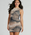Answer the call for celebration in the Abstract Print Bodycon Mini Dress, where contemporary design meets effortless cool. This eye-catching piece features a bold all-over abstract pattern on sleek mesh fabric, creating a dynamic look that moves with you. The sleek crew neckline and curve-enhancing ruching work together to create a silhouette that's both sophisticated and ready for fun.