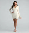 Embrace timeless romance with a contemporary twist in our Lace V-Neck Mini Dress. Delicately crafted from intricate lace with graceful flared sleeves, this dress blends vintage inspiration with a modern body-hugging silhouette. The stretchy knit lining ensures comfortable wear, making it perfect for celebrating life's most cherished moments in style.