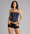 Studded Lace Up Halter Denim Corset Top Dark Wash Airily